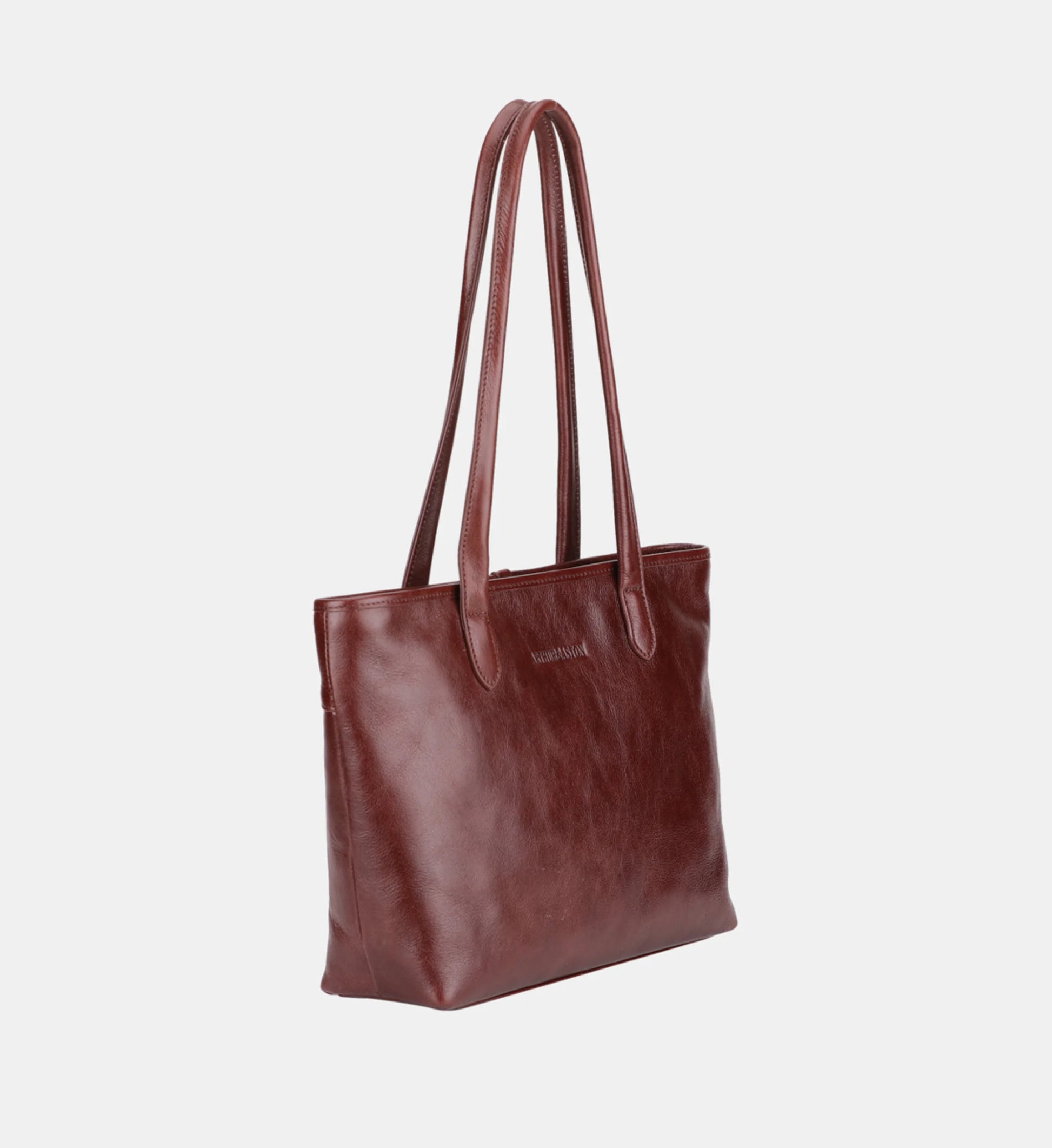 Ce sac cabas d’Arthur & Aston est fabriqué en cuir de vachette végétal grainé, alliant durabilité et esthétique raffinée. Il dispose de deux anses lui permettant d’être porté à la main ou à l’épaule.