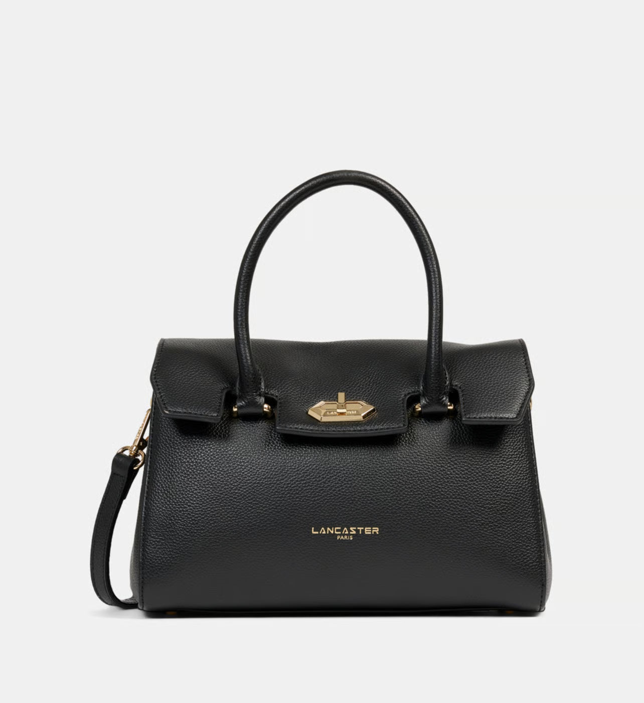 À l’intérieur, plusieurs **poches zippées et poches plaquées** permettent d’organiser vos essentiels. La façade est ornée de la **signature Lancaster** pour une touche distinctive.