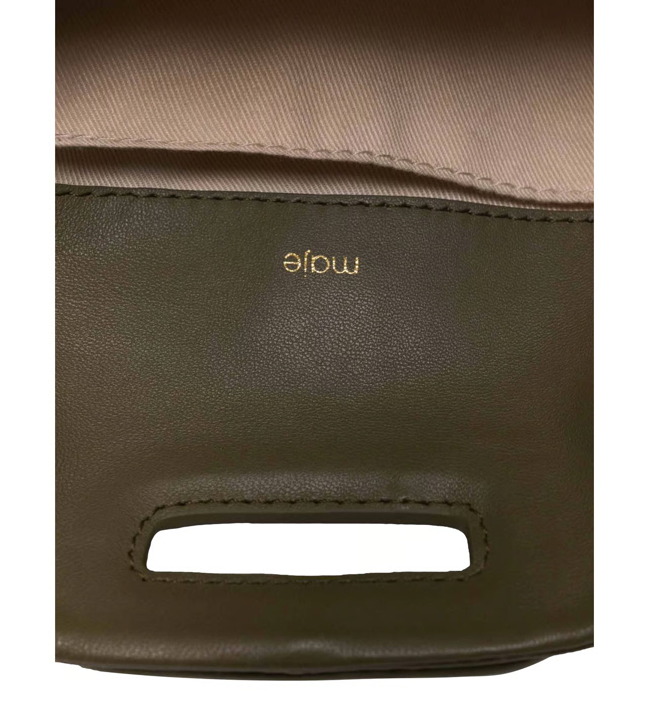 Le sac besace Miss M de Maje est réalisé en cuir de mouton lisse, offrant élégance et douceur au toucher.