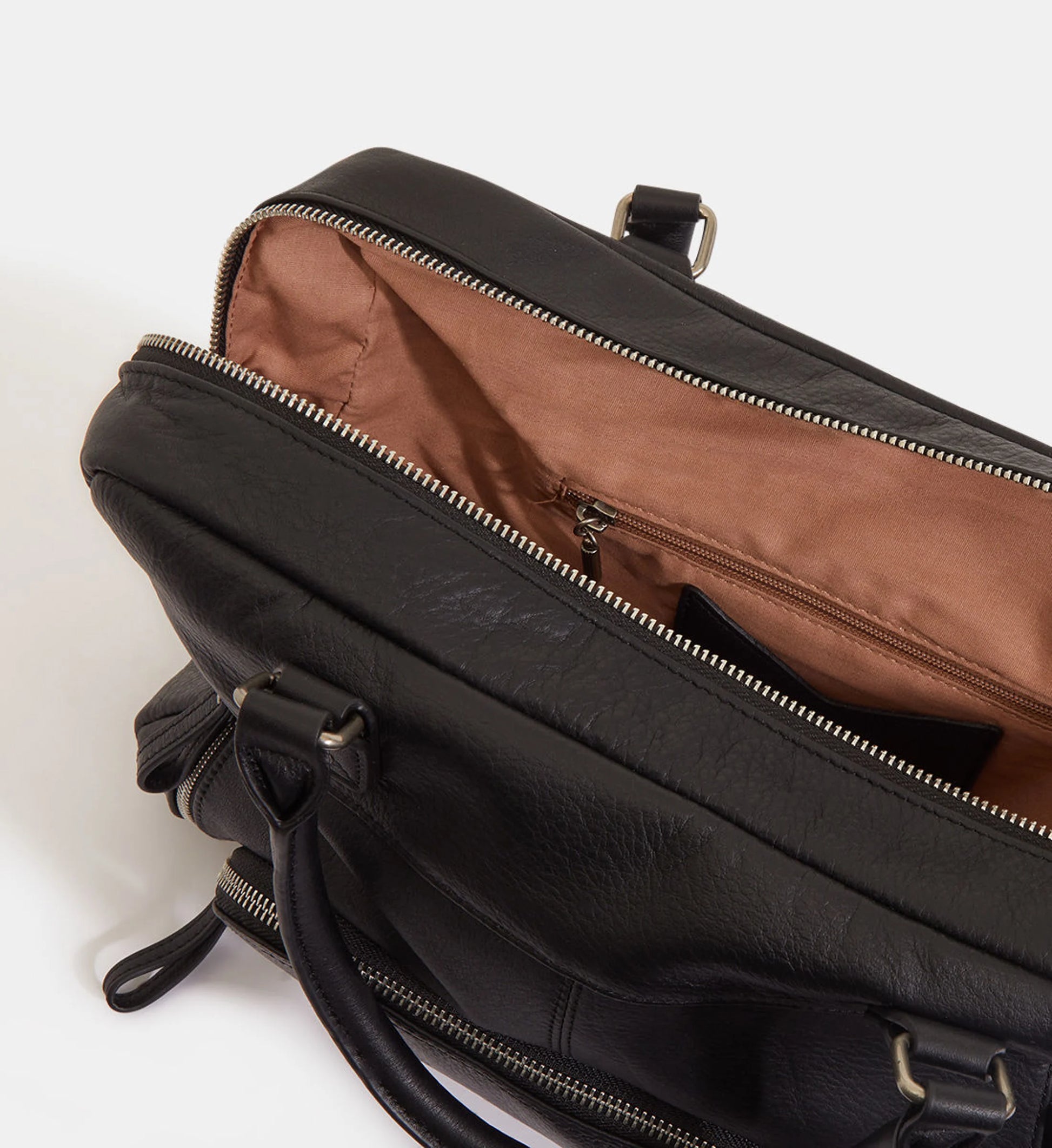 Le sac offre deux possibilités de port : grâce à ses deux anses, vous pouvez le porter à la main ou sur l’épaule, et il est également livré avec une bandoulière amovible et réglable (jusqu’à 110 cm). Sa doublure est en coton, et son format permet d’accueillir des documents au format A4, voire un ordinateur portable 13″. Les dimensions sont de 27 cm (H) × 36 cm (L) × 13 cm (P), pour un poids d’environ 1 kg. :