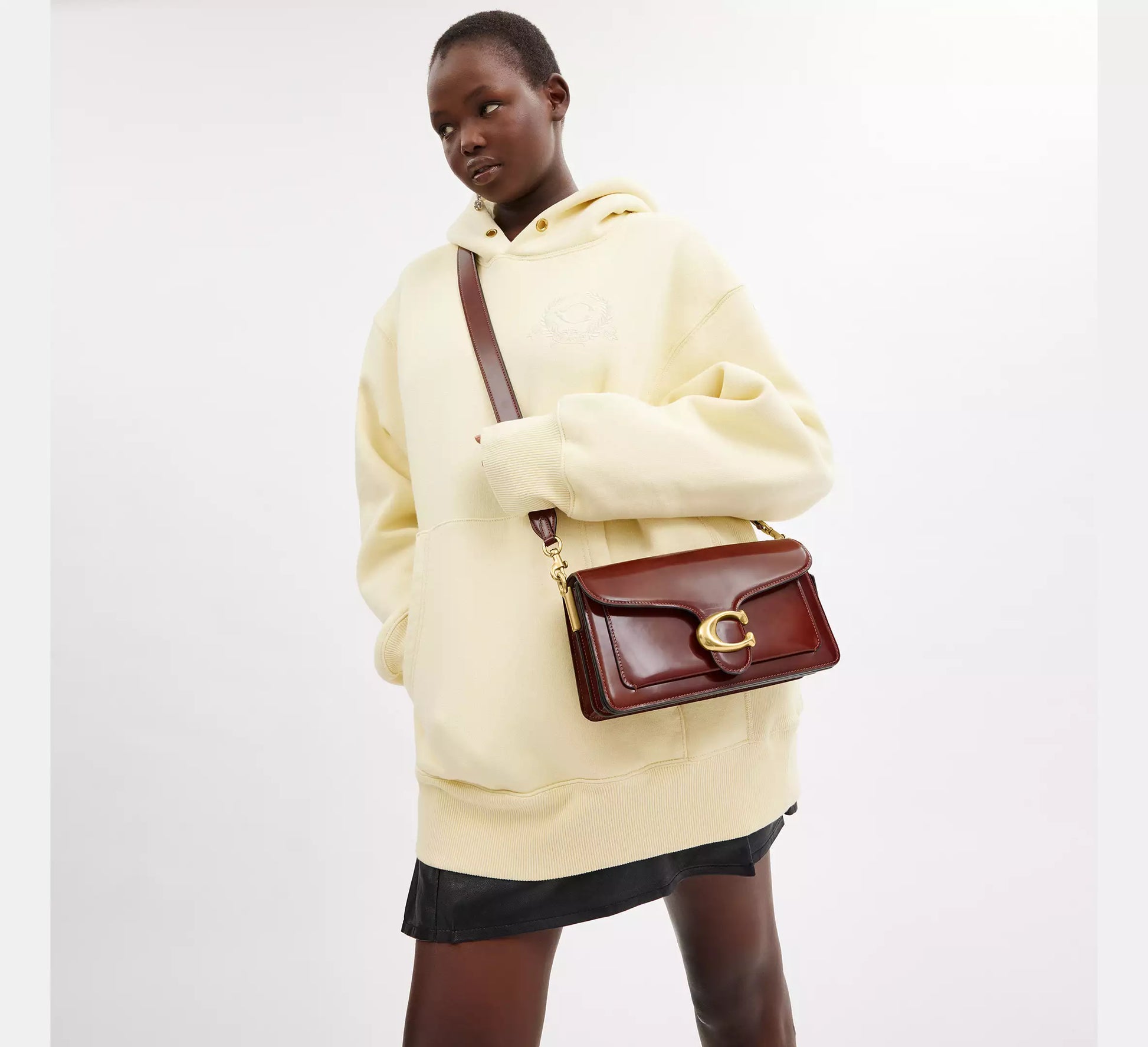 Le Tabby 26 de Coach est un sac épaule structuré inspiré d’un modèle des années 1970. Il est fabriqué en cuir spazzolato lustré et en cuir de veau raffiné, lui offrant une finition élégante et durable.