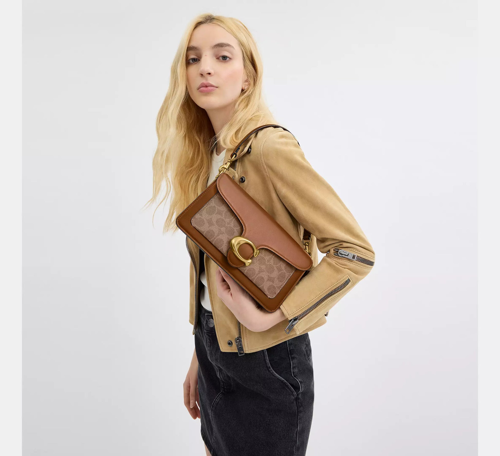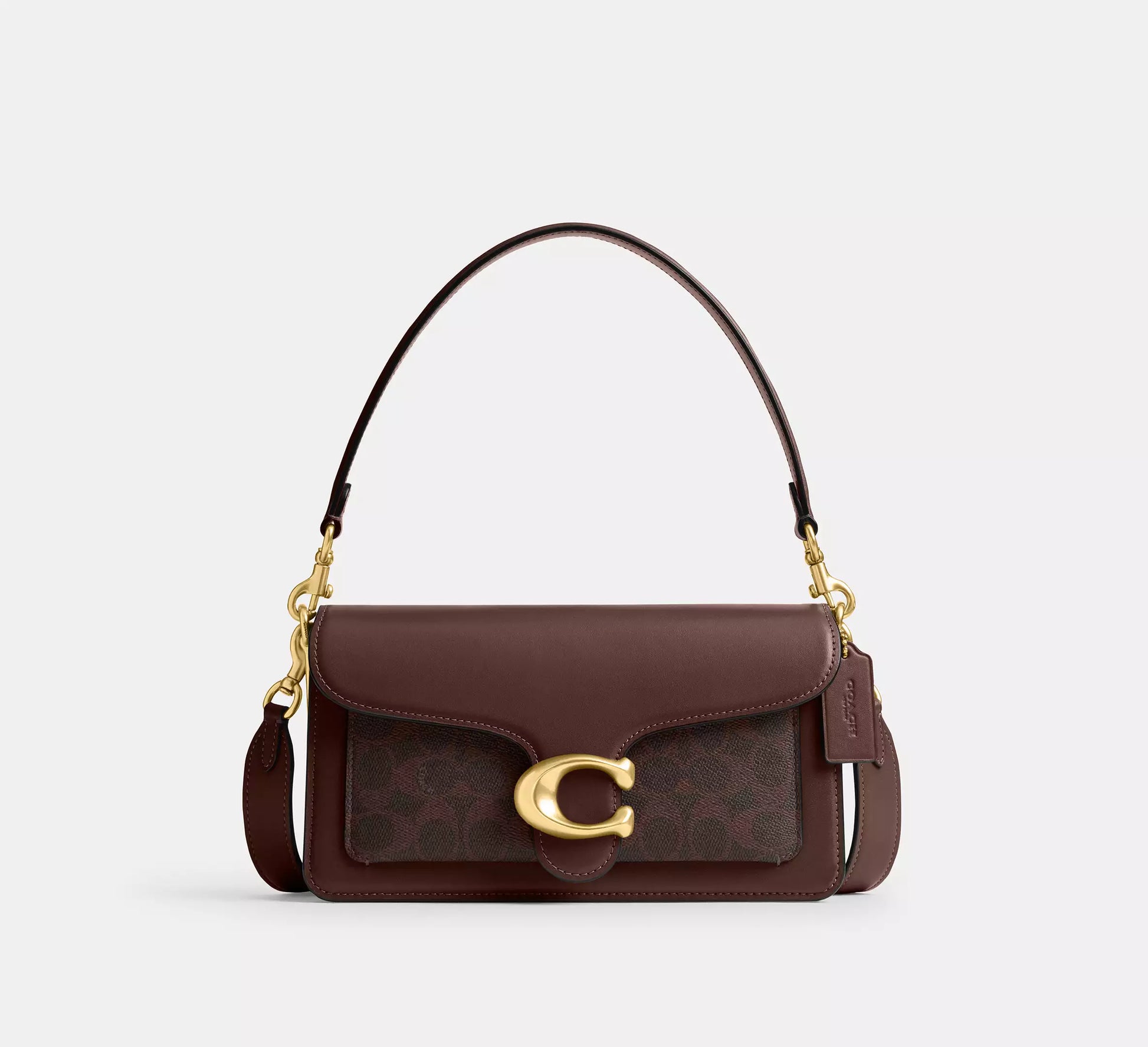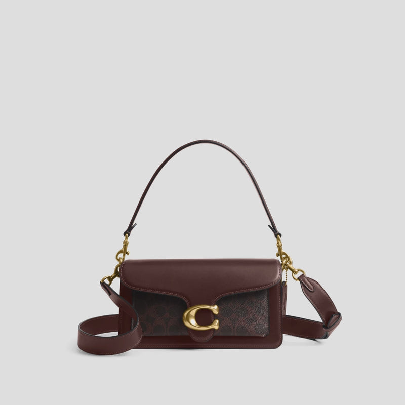 Le Tabby 26 en toile signature de Coach combine toile enduite iconique et cuir de veau raffiné. Sa fermeture par pression (snap) permet un accès rapide et sécurisé, tandis que deux anses amovibles offrent plusieurs façons de le porter : épaule ou croisé.