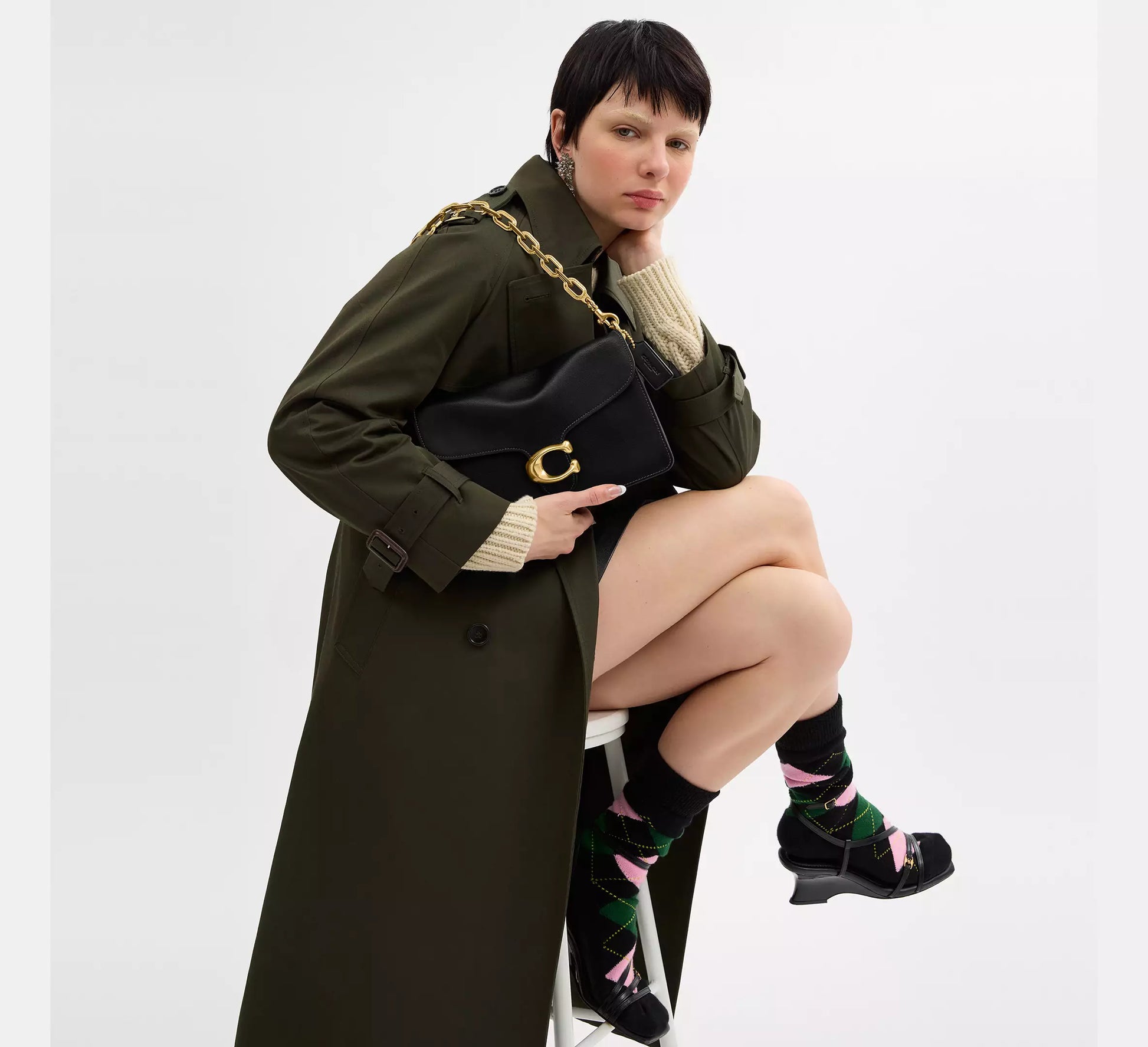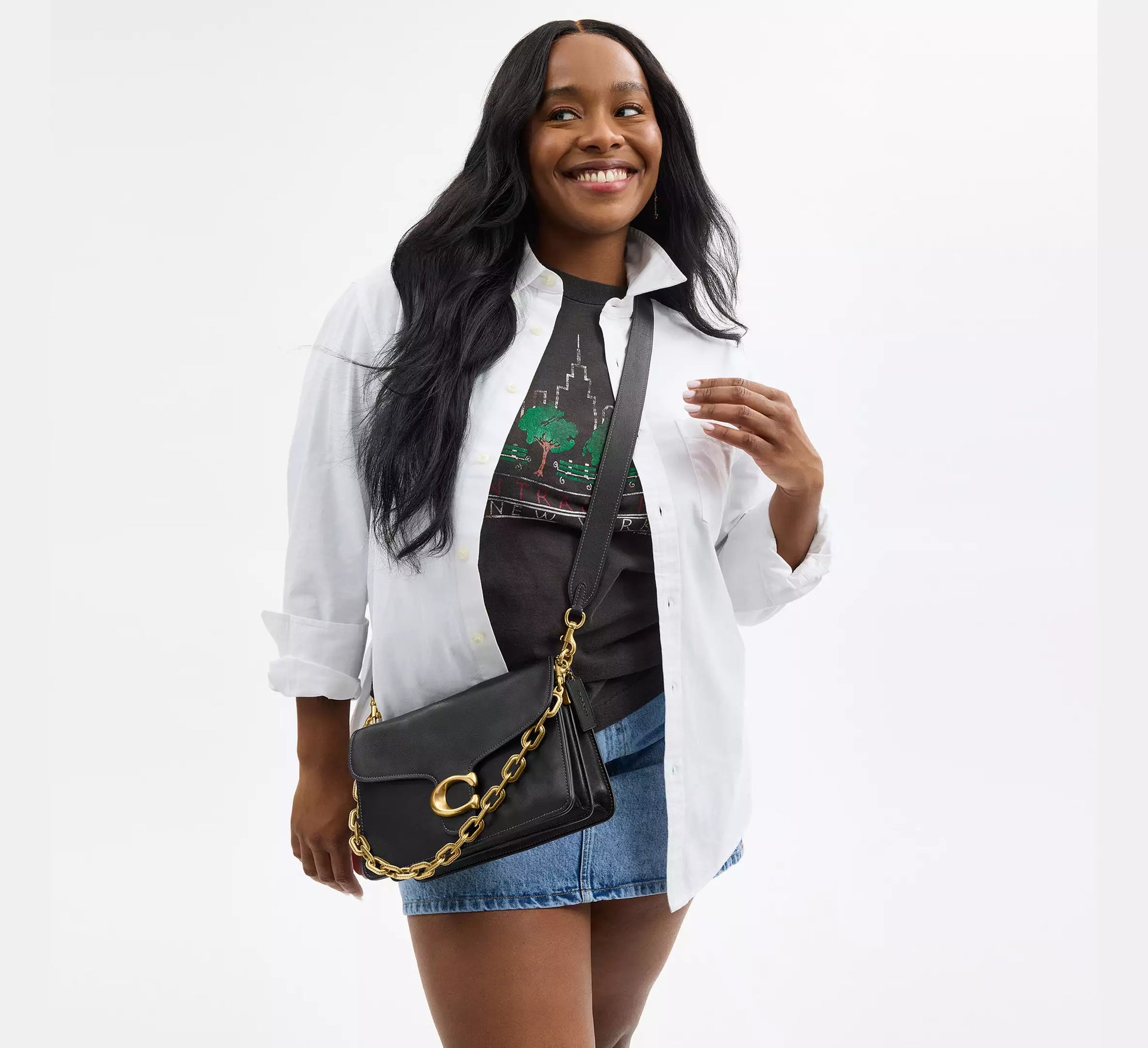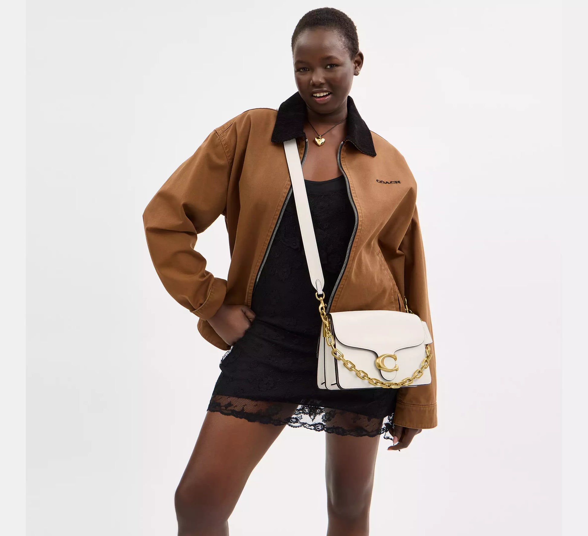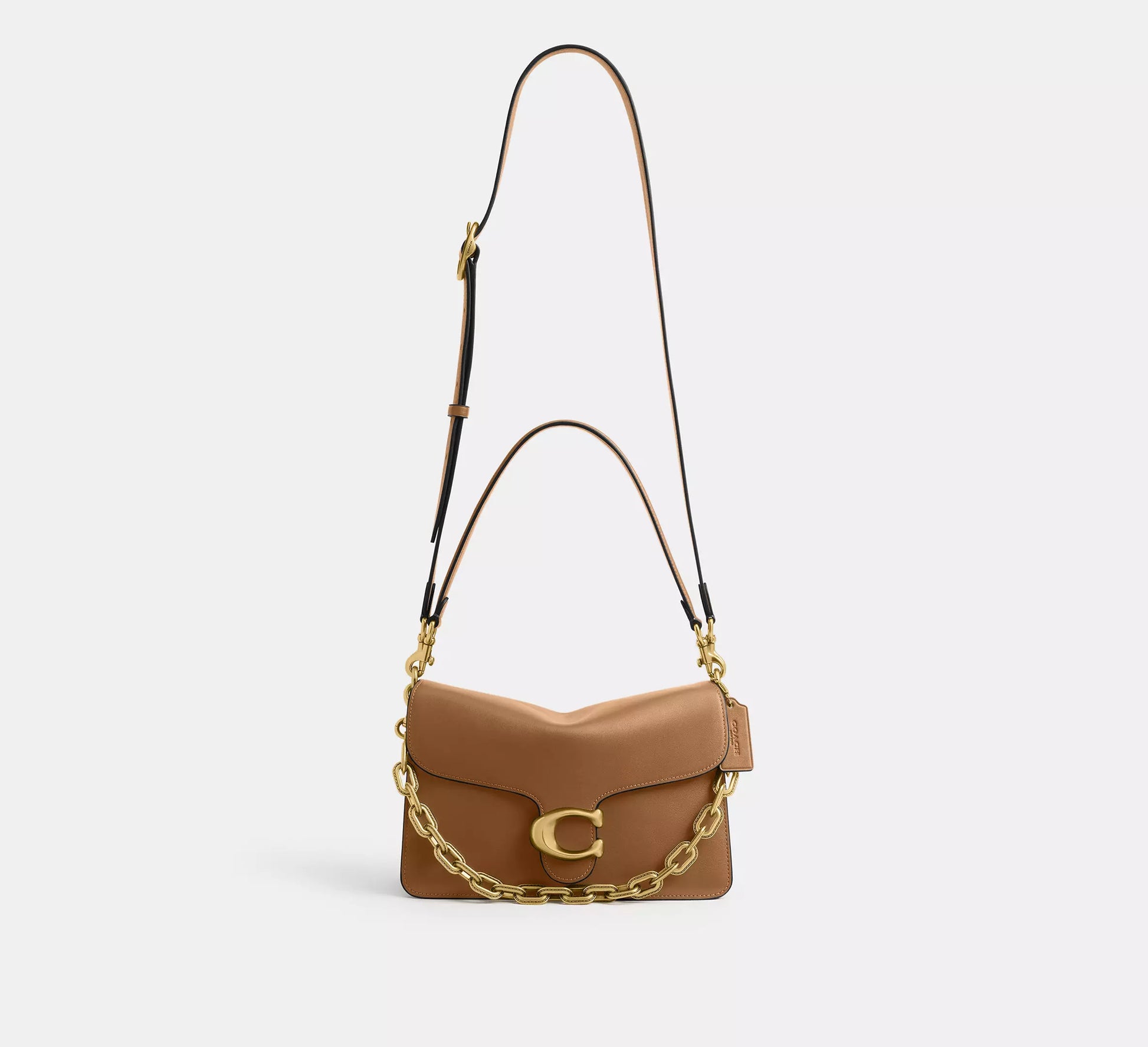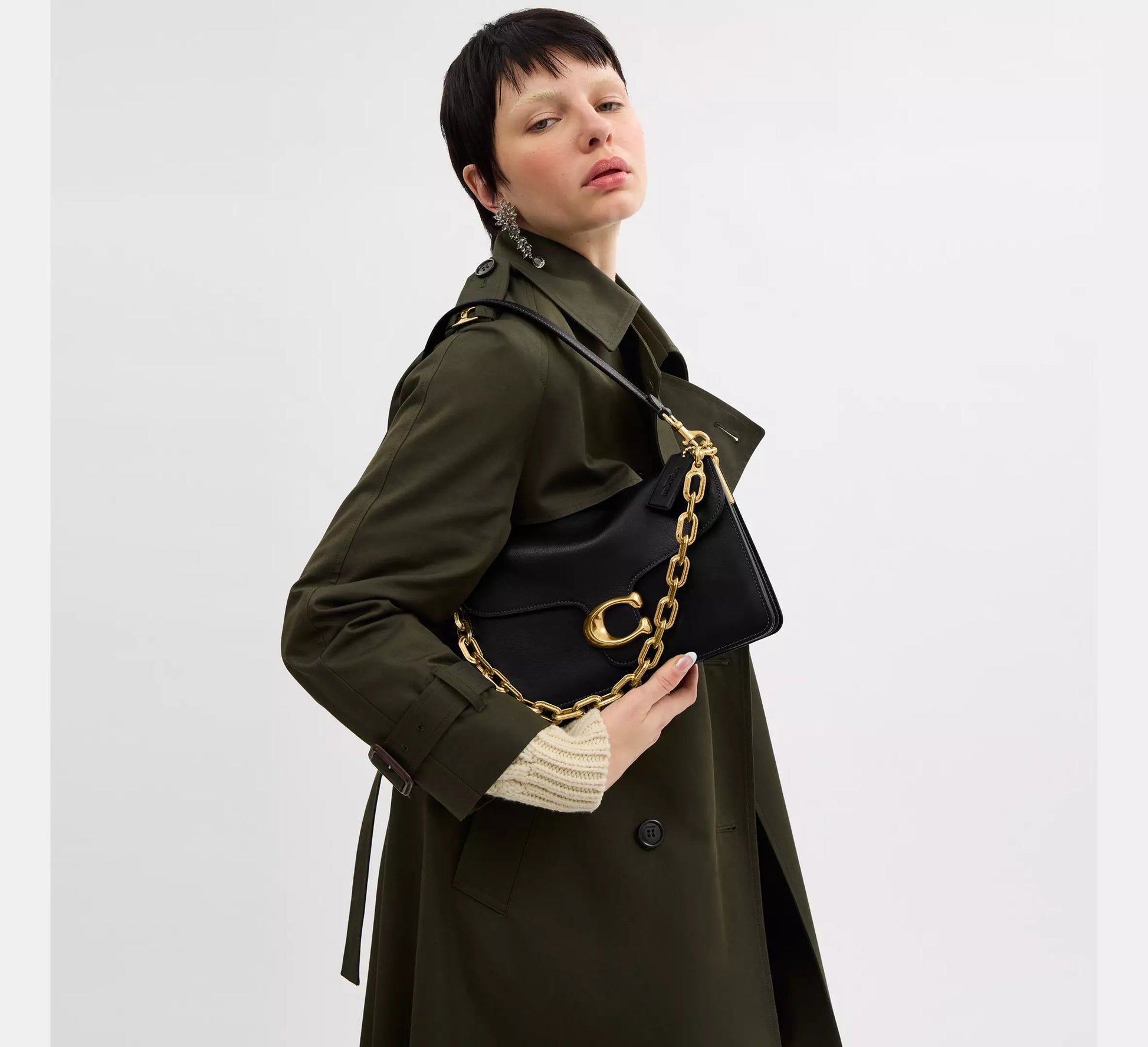 Le sac épaule Tabby avec chaîne de Coach est un modèle structuré en cuir grainé doux au drapé souple et à l’éclat discret, inspiré d’un design des années 1970.
