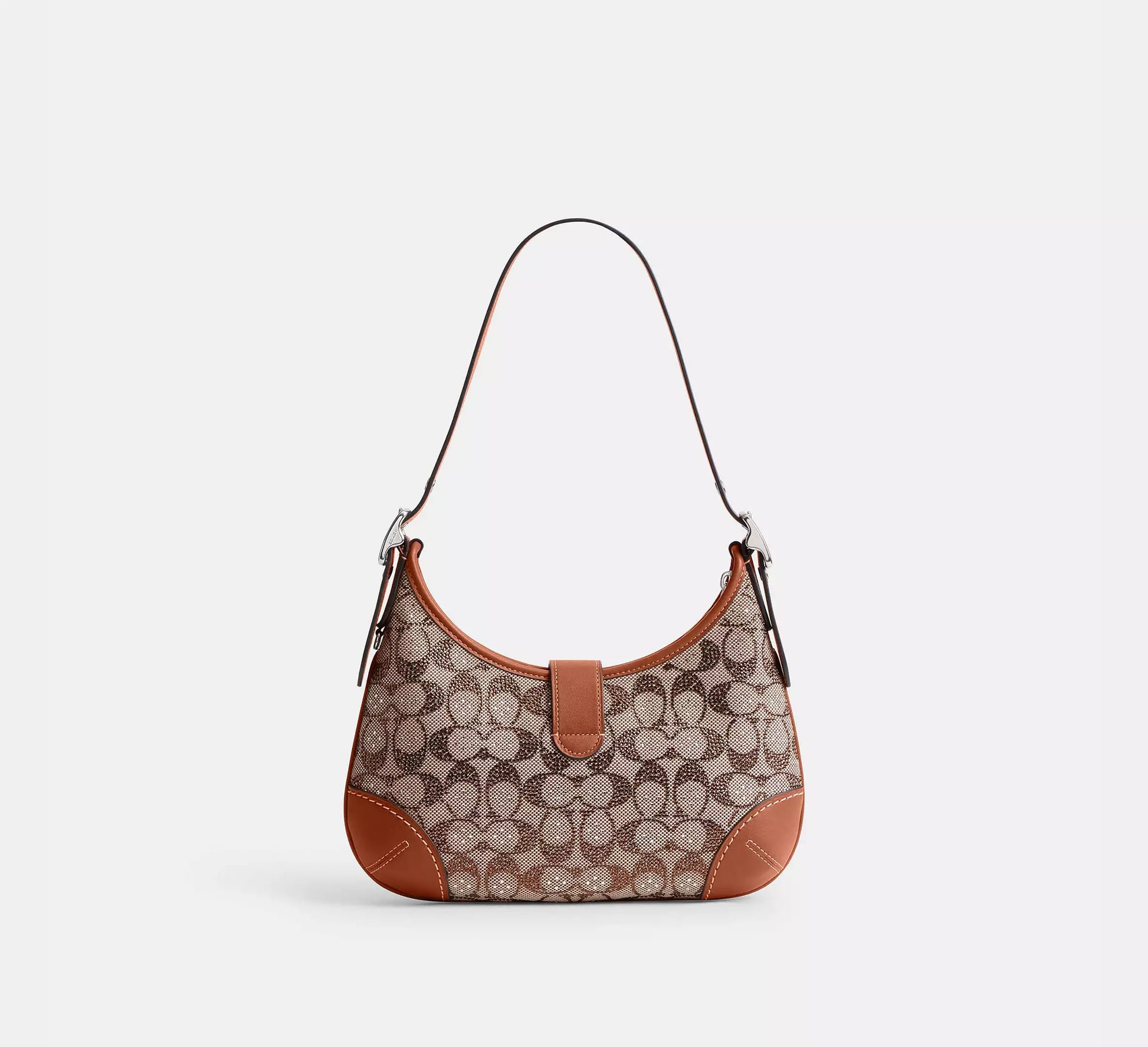 Le sac hobo Hamptons de Coach est conçu dans un jacquard signature orné de cristaux scintillants.