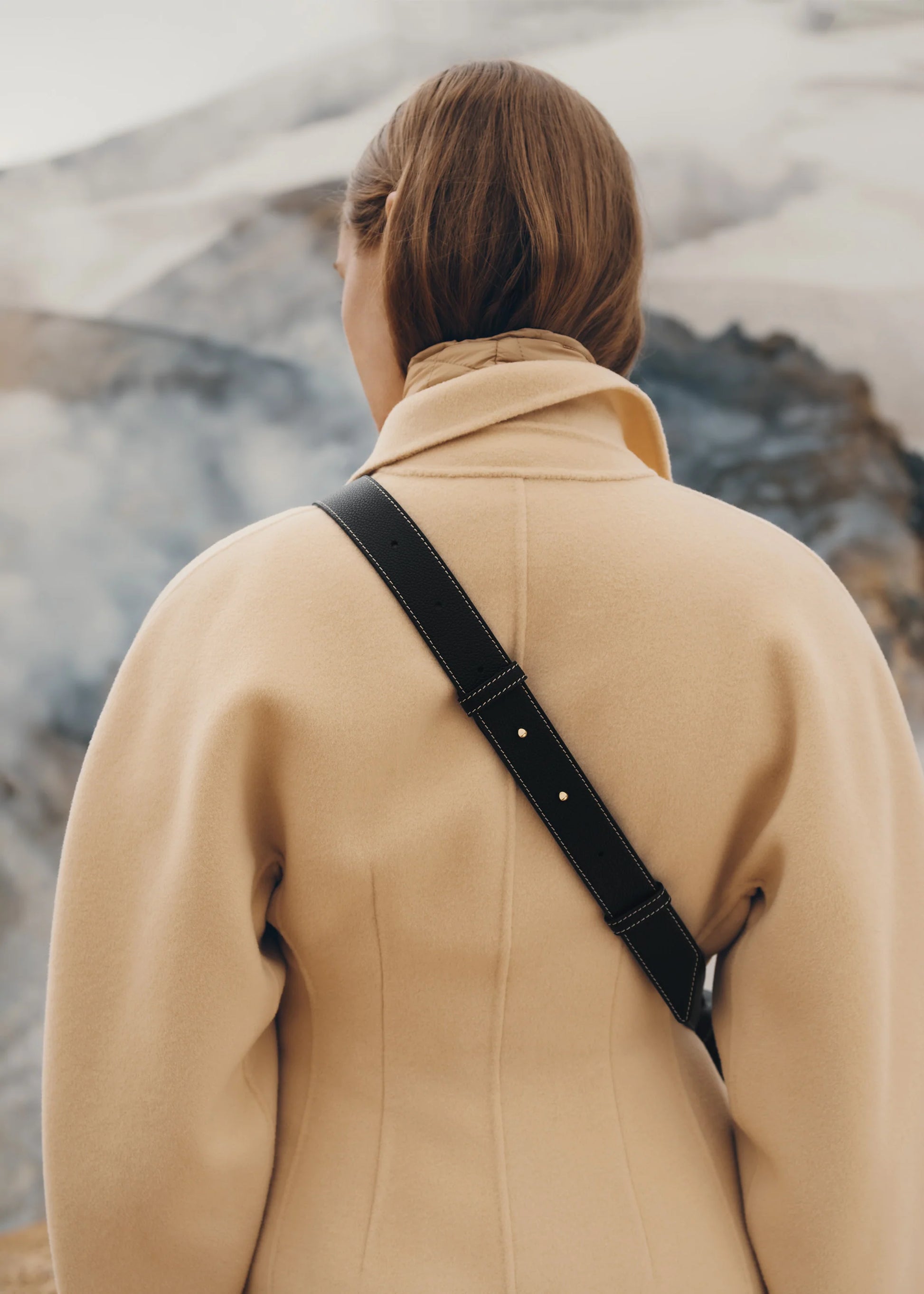 La bandoulière est ajustable et fixée par des mousquetons, offrant la possibilité d’un porté à l’épaule, en bandoulière ou à la main.