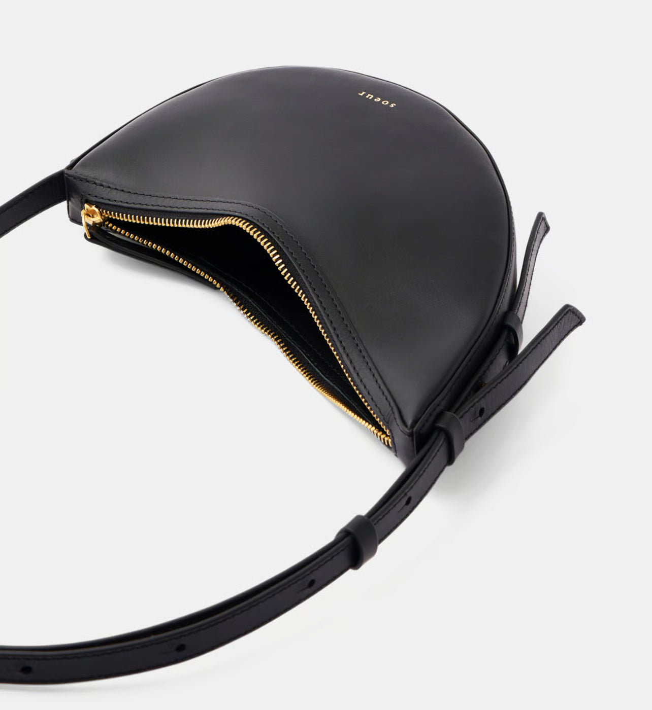 La bandoulière en cuir est réglable grâce à des boutons-col, ce qui permet un porté à l’épaule ou en bandoulière.