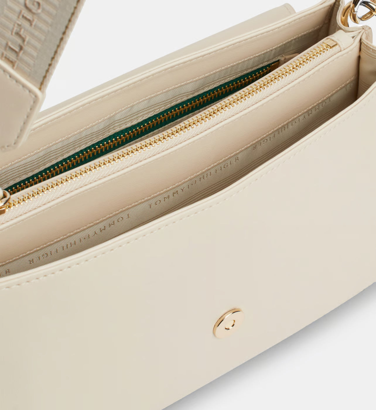 Le sac besace Fresh Signature de Tommy Hilfiger se distingue par un revêtement texturé et une bande signature sur le devant.