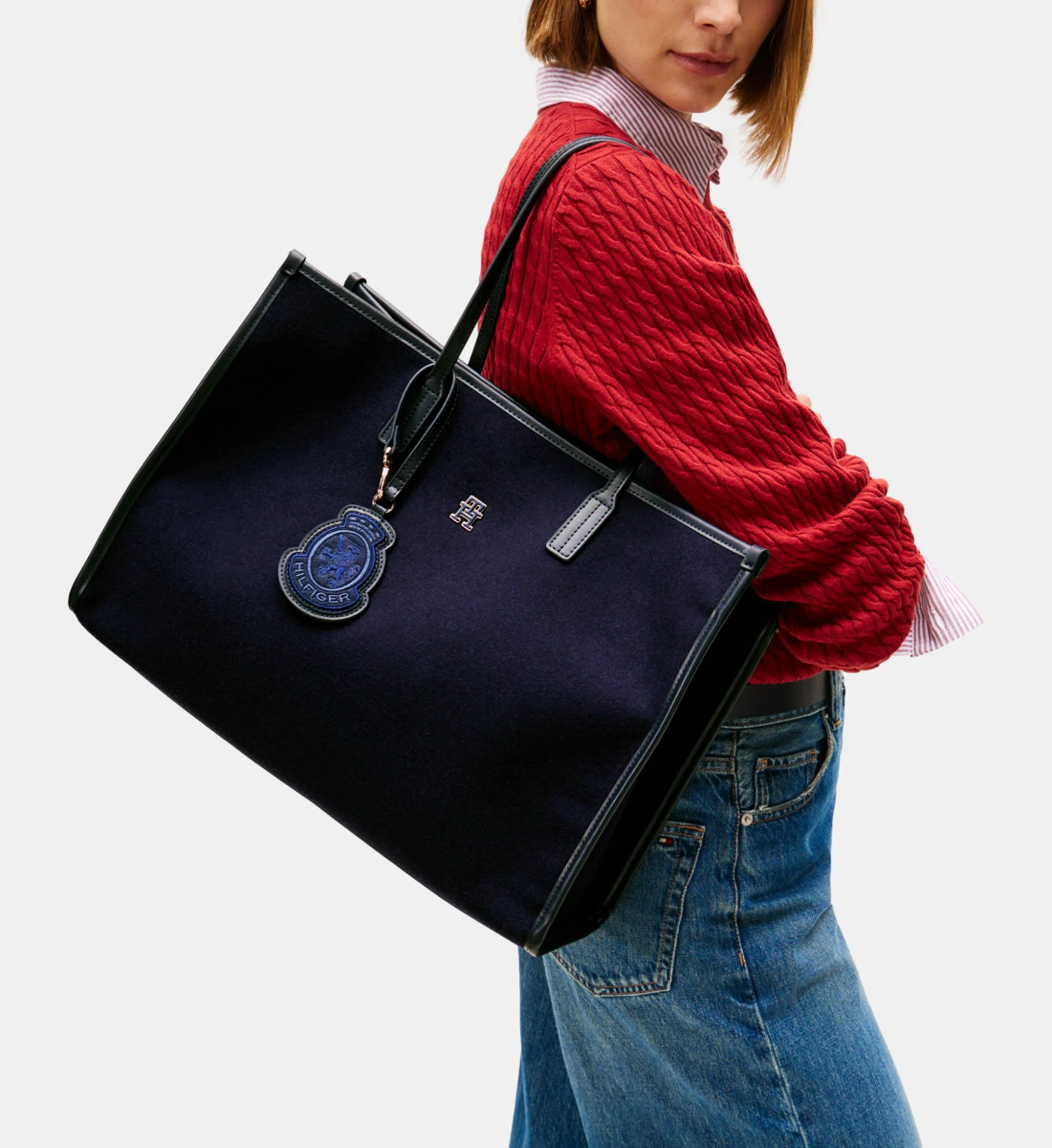 Un charm siglé Tommy Hilfiger vient orner l’avant du sac, ajoutant une touche de raffinement et d’identité de marque.